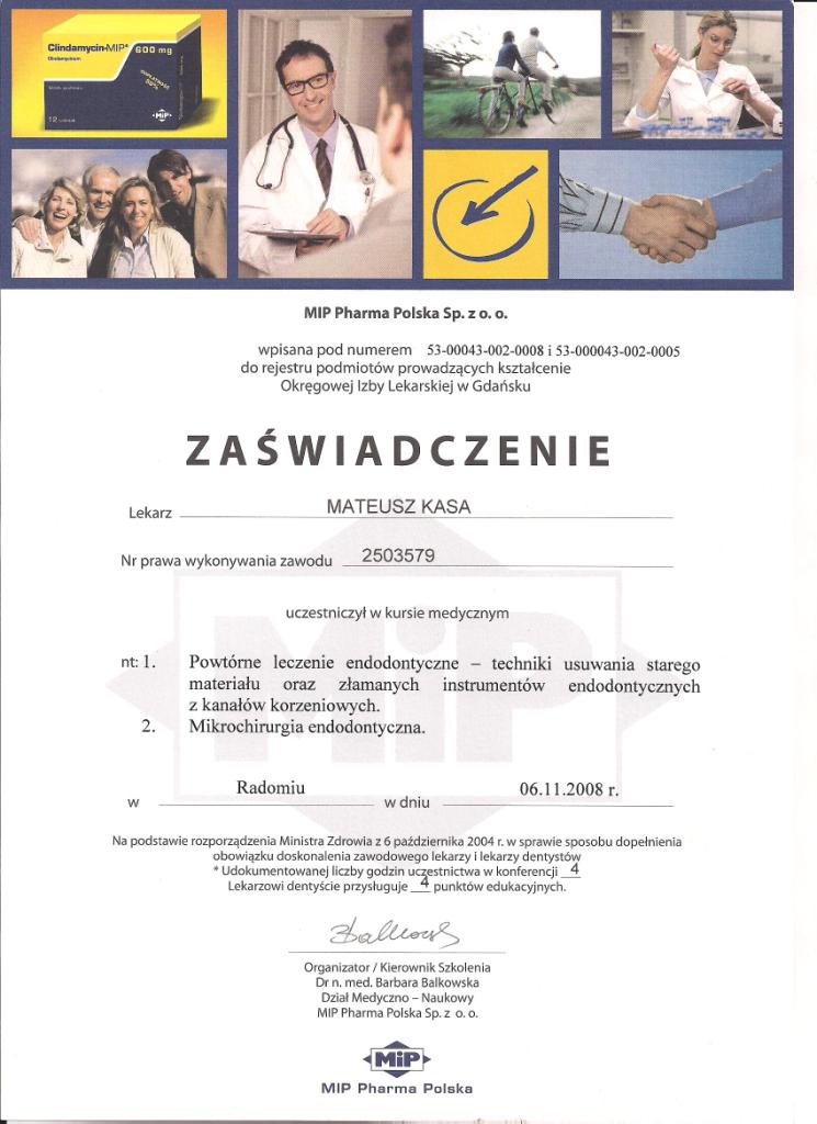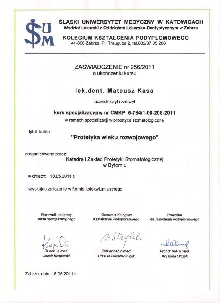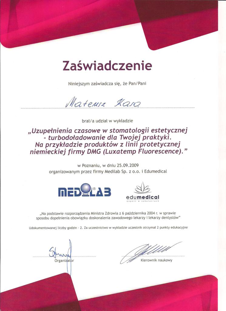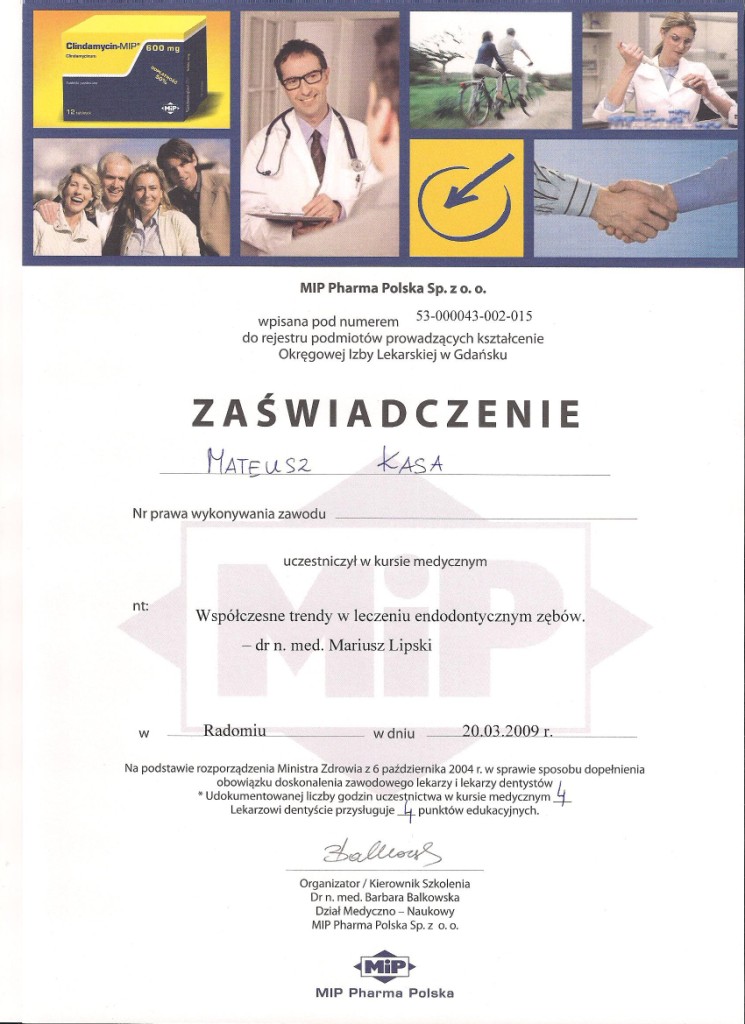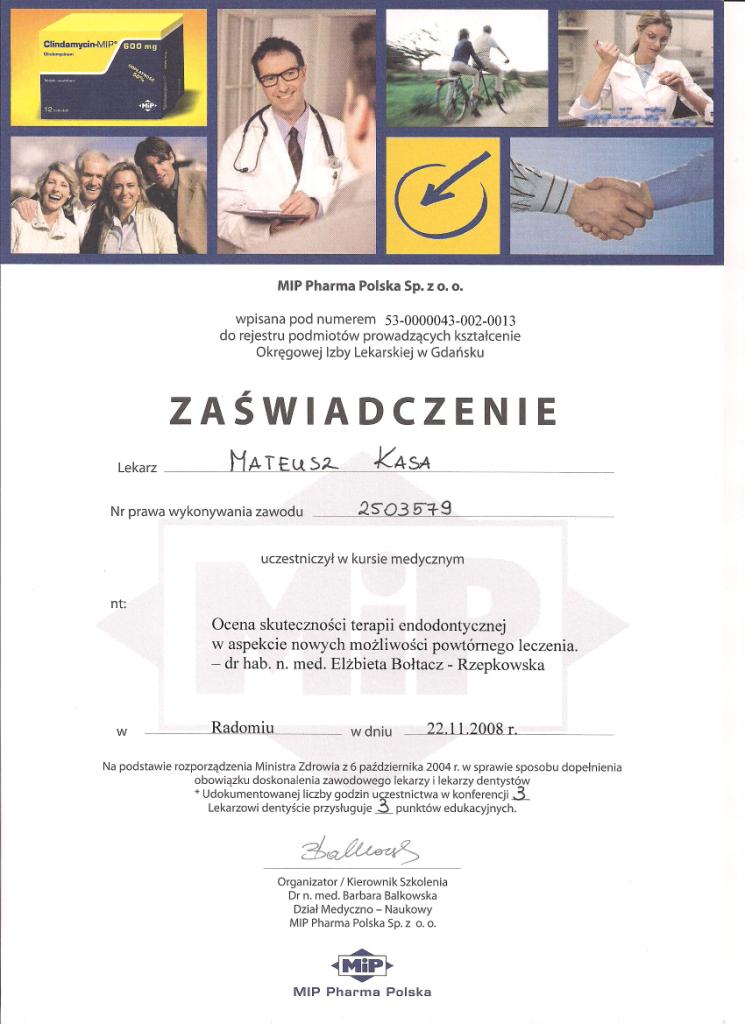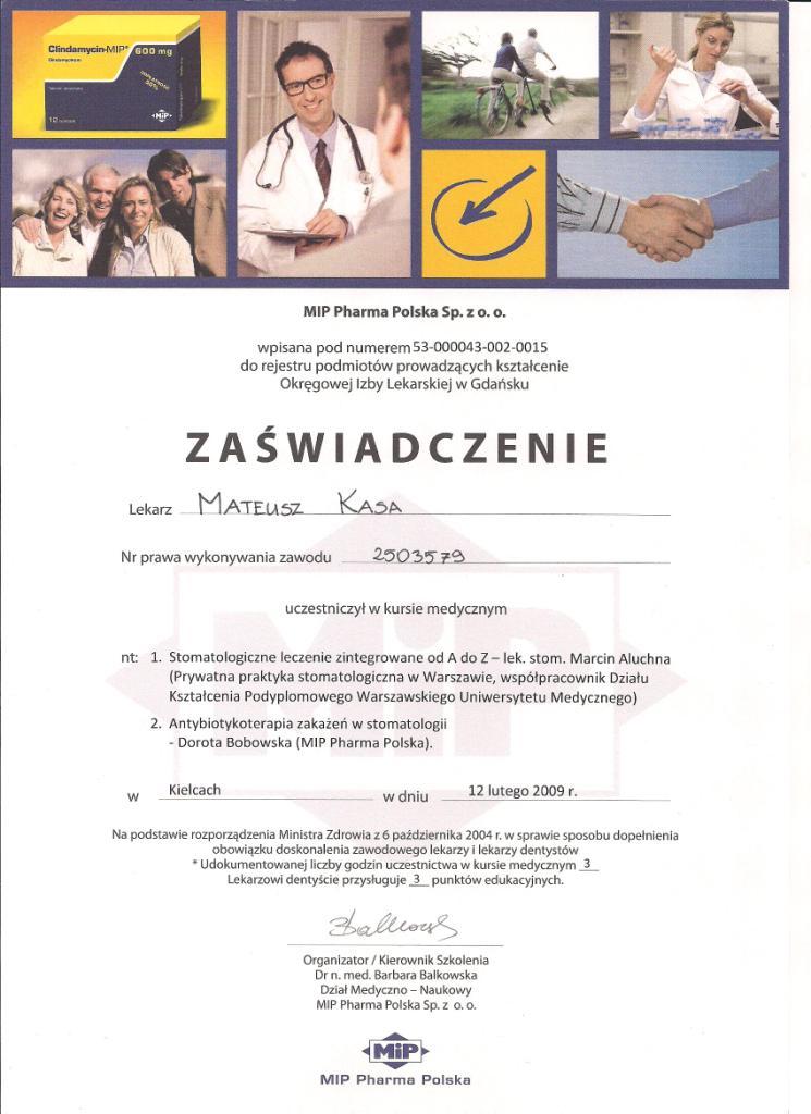 W 2008 roku ukończyłem studia na Oddziale Stomatologii Wydziału Lekarskiego Collegium Medicum Uniwersytetu Jagiellońskiego. W trakcie 5 lat rezydentury w Wojewódzkiej Przychodni Stomatologicznej zdobyłem ogromne doświadczenie w wielu dziedzinach stomatologii. W 2015 roku uzyskałem tytuł Specjalisty Protetyki Stomatologicznej. Wiedza teoretyczna i praktyka pozwala mi na interdyscyplinarne leczenie pacjentów z różnymi chorobami w obrębie jamy ustnej.