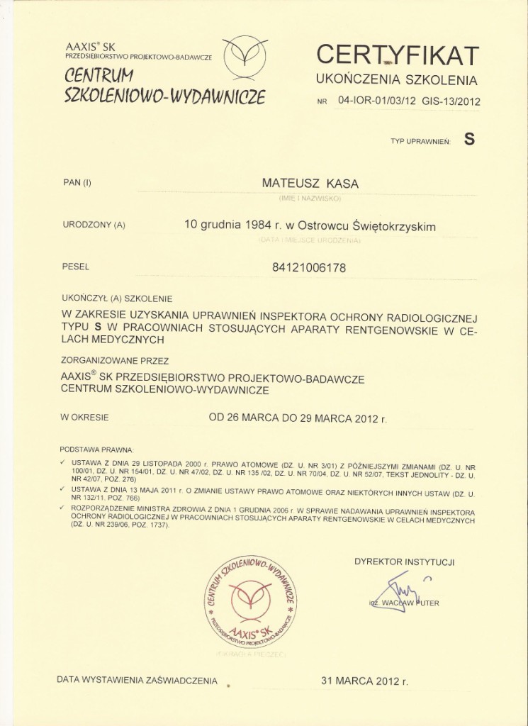 W 2008 roku ukończyłem studia na Oddziale Stomatologii Wydziału Lekarskiego Collegium Medicum Uniwersytetu Jagiellońskiego. W trakcie 5 lat rezydentury w Wojewódzkiej Przychodni Stomatologicznej zdobyłem ogromne doświadczenie w wielu dziedzinach stomatologii. W 2015 roku uzyskałem tytuł Specjalisty Protetyki Stomatologicznej. Wiedza teoretyczna i praktyka pozwala mi na interdyscyplinarne leczenie pacjentów z różnymi chorobami w obrębie jamy ustnej.